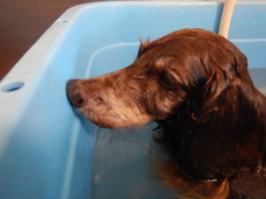 お風呂が好きなチョコちゃんは「お風呂♪お風呂♪」って喜びの舞で迎えてくれました。
