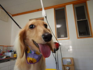 お手入れ中はとても大人しい良い子です。