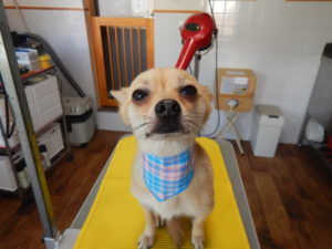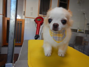 テーブルに乗せられるとトリミングって分かっているので大人しくなります。